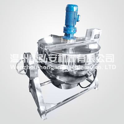 可傾式夾層鍋由鍋體、支架、蝸輪、蝸桿等部件組成,鍋體可作180° 以內的轉動,本設備為敞口式濃縮,主要用于制藥、食品、化工、輕 工等行業對料液的煎煮和濃縮,該設備與物料接觸部分為不銹鋼SUS304,具有較好的耐腐蝕性能,經久耐用,符合GMP要求,同時 亦、可根據用戶要求,可增加攪拌裝置。